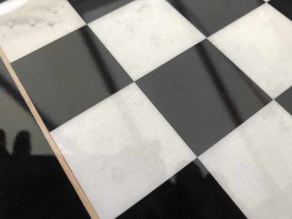 Beautiful Black Gloss Chess board from the Italian manufacturer Italfama with half-size playing area for smaller chess pieces. Black and white wood squares with maple inner border. Attractive and professional finish with a generous border. 16.5″ Total.