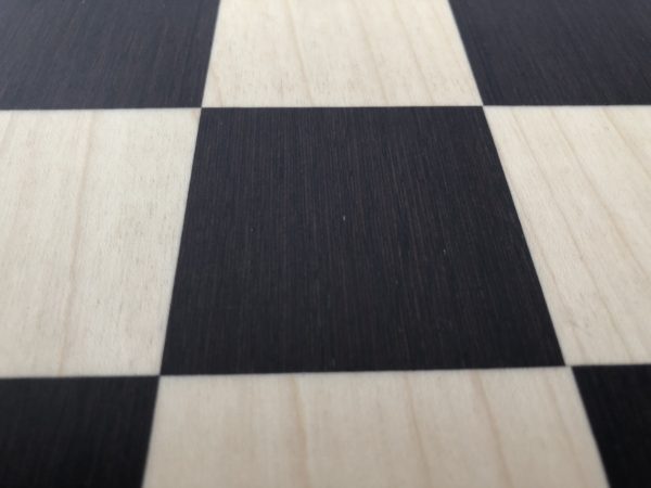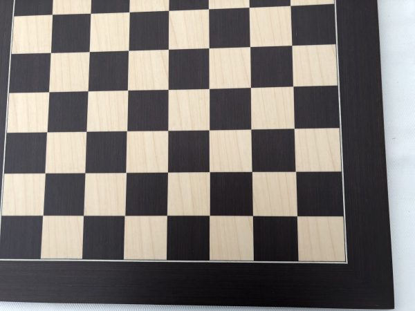 Beautiful Dark-Brown (Wenge) Matt Chess board from the Spanish manufacturer Ferrer with full-size playing area for full size chess pieces. Classic Dark Brown and cream wood squares with black border. Attractive and professional finish with a generous border. 55cm / 23″ Total.