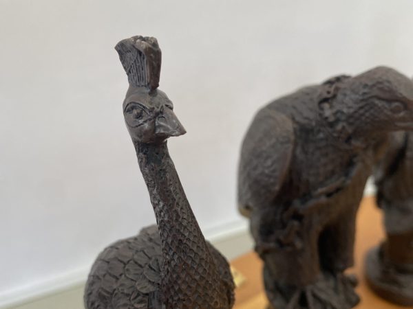Introducing our exquisite American and British Birds set of 32 Chess pieces, where elegance meets craftsmanship. Each piece is a work of art from sculptor R Fisher, intricately designed in the likeness of 7 specific American and British birds. The king, a magnificent peacock, stands proudly at five inches. Each piece is made from crushed marble. These beautiful and weighty pieces transform your chess game into a stunning display of avian grace. The first edition of this 19th century chess set can be found in the British Natural History Museum. The birds are from illustrations in the rare book of ‘British and American Birds’.