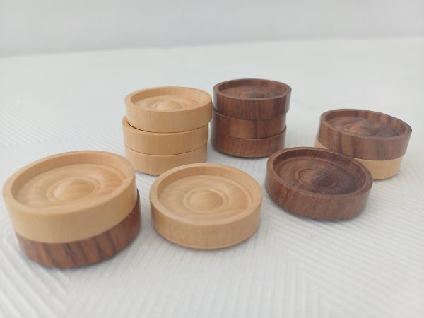 Our new handcrafted, beautifully made Checkers. Made from high-quality, natural Rosewood and Acacia, each piece showcases the rich, unique grain and colour variations of the wood, making every set truly one-of-a-kind and a lovely addition to any set or on its own, with grooves on the bottom of the pieces allowing for stackable pieces, and easy storage. The dimension for these are 1.3 inches, so we recommend playing on a board with a square size of 1.5″ or greater.