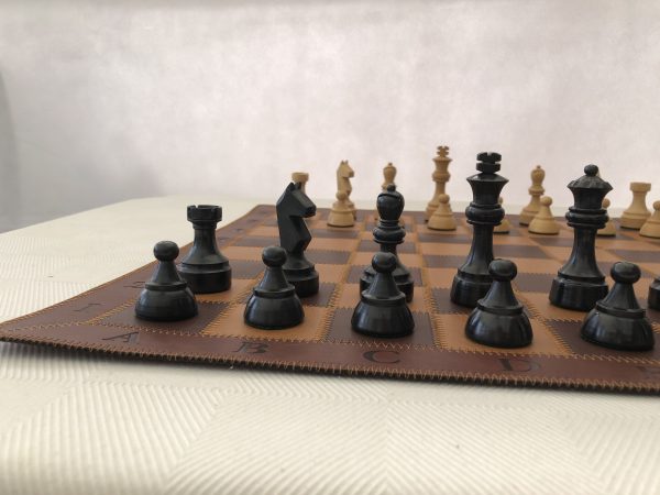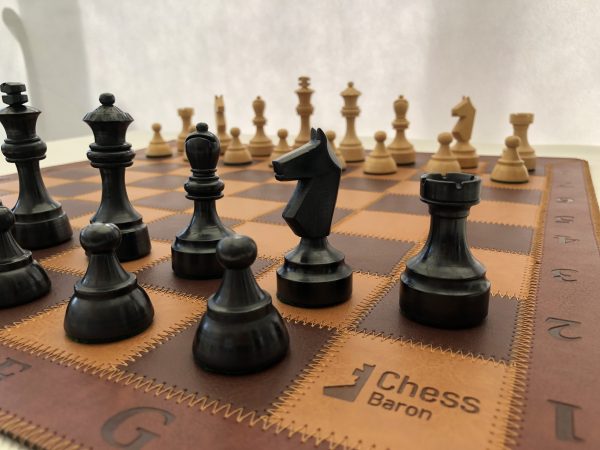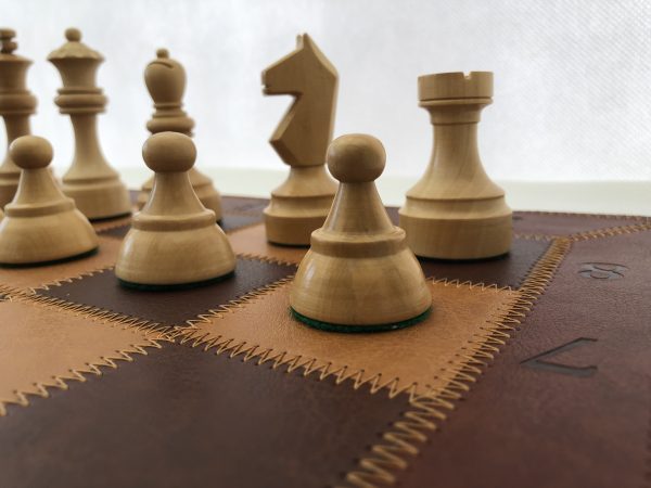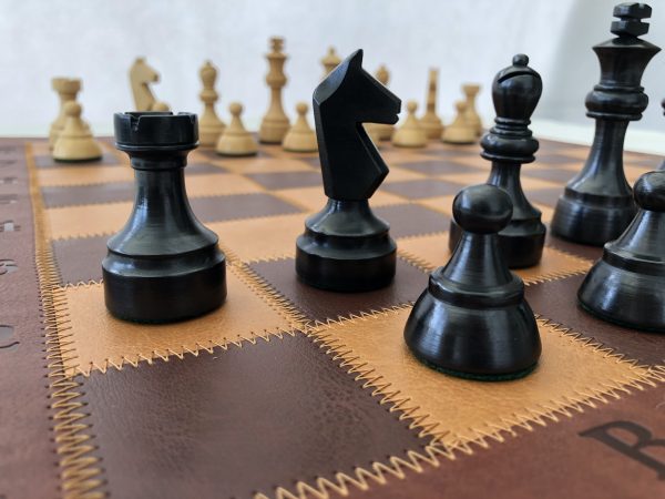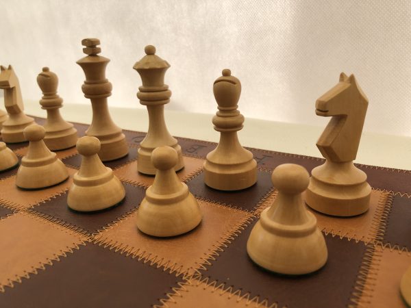 With a sleek modern/contemporary design the Firenze is an exercise in a simple but beautiful chess product. Standard weighting, but good intrinsic weighting through the use of solid wood for each piece. Each piece has the same base diameter (1.1″) and needs a board or mat with 1.5″ squares or greater. It’s pictured on our leather chess mat, but you may prefer a wooden board – your choice. The King stands 3.25″ high.