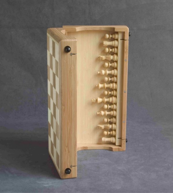 A bamboo combination chess set with the following features: