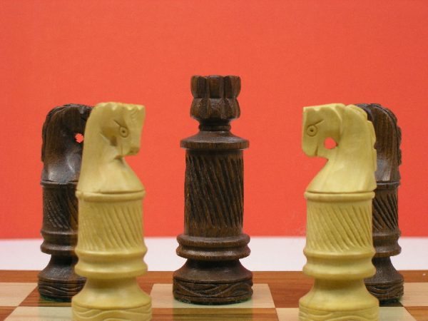 This one has a kinda orthodox church look. An unusual set of chess pieces that we haven’t seen elsewhere. Among the chess pieces, the King with it’s large and prominent cross lies at one end of the spectrum whilst the pawns with an ornate shank lie at the other end. The Knights have a look on their faces and expression bound in their body pose that makes them appear ready to uncoil and come to life. We love the chess set – but please remember that when you’re playing you’re not attending church and don’t have to sing hyms. You can sing The Beatles catalogue instead. The board for these chess pieces should be a rustic style with 1.5 inch squares.