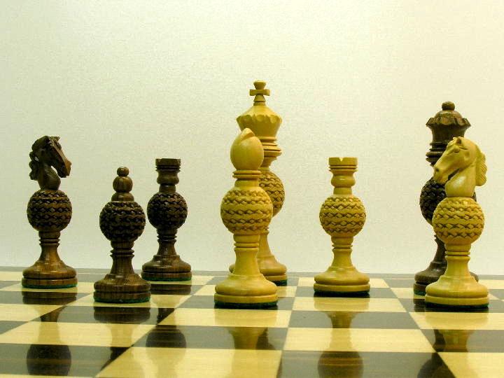 Another Globe masterpiece with larger King. The manufacture is a blending of the tradition of Staunton with the exotic middle eastern style. The king chess piece is a perfect height of 4.5 inches to compliment the atmosphere of the chess set. The board for this chess set should be with 1.75 inch squares. We just love that globe design – don’t you?