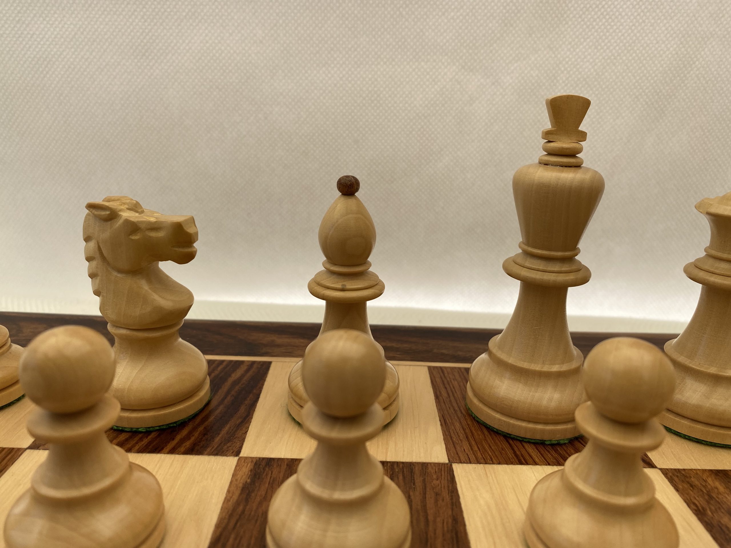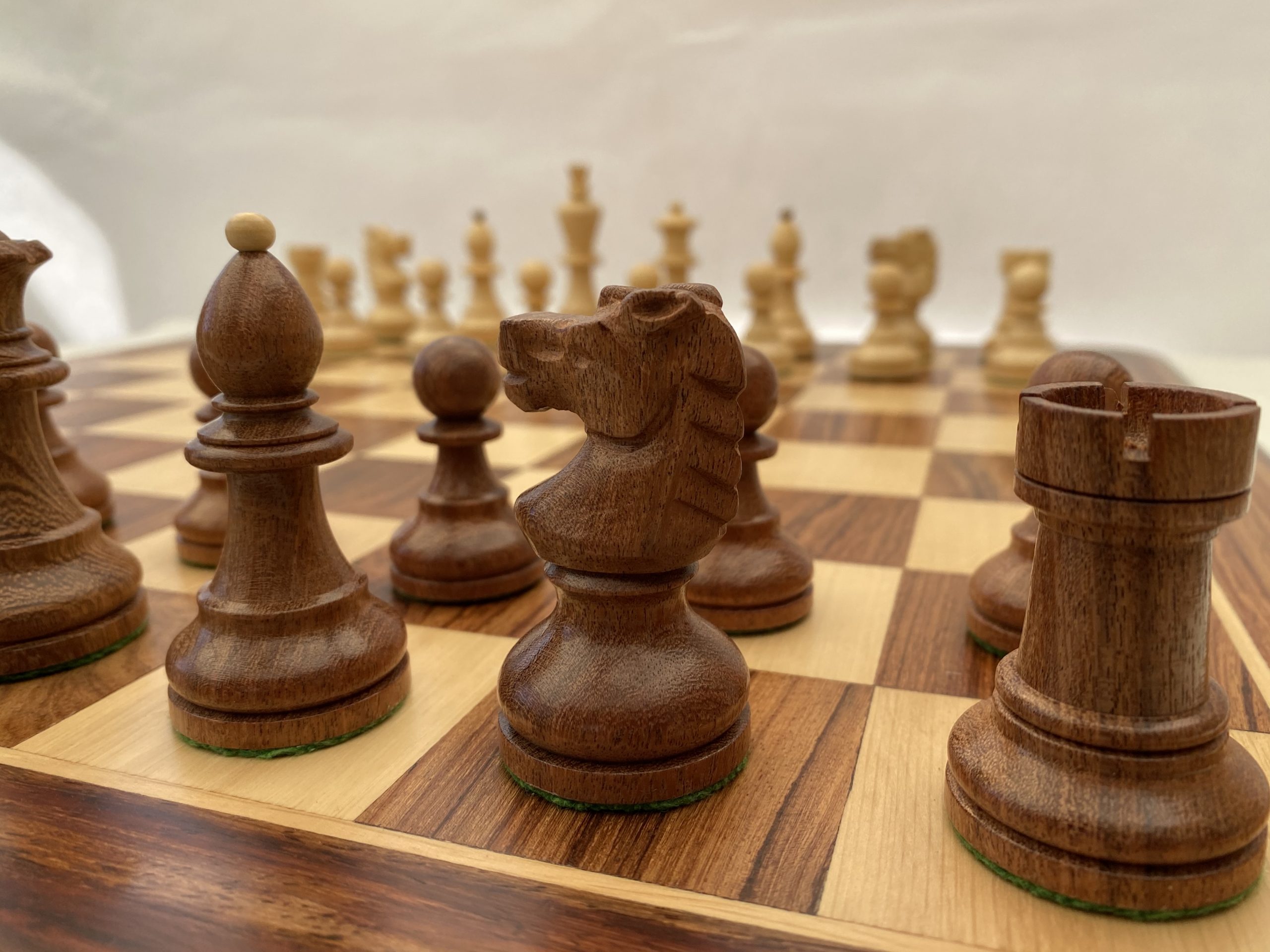 Why Bohemian? Well, such a person is unconventional. This chess design has that little tweak against convention of an opposing colour top on each of the bishops, and the effect is nothing but stunning. How… well… Bohemian. But it’s not just the Bishops – look at those Knights – alluring and ready for action. Double weighted acacia chess set with Double Queens for pawn promotion. King stands 3.5″ high and 1.4″ in base diameter. One of the best mid price sets we’ve seen.