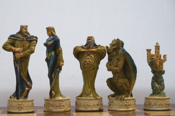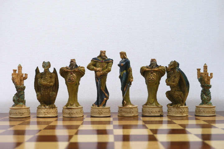 This product from Chess Baron: Fantasy Dragon Soldier: A chess set that includes presentation case. Heavily weighted by crushed stone and bonded by high quality resin. Excruciatingly hand painted and decorated. Superb larger that life characters depicted as fantasy dragon soldiers.